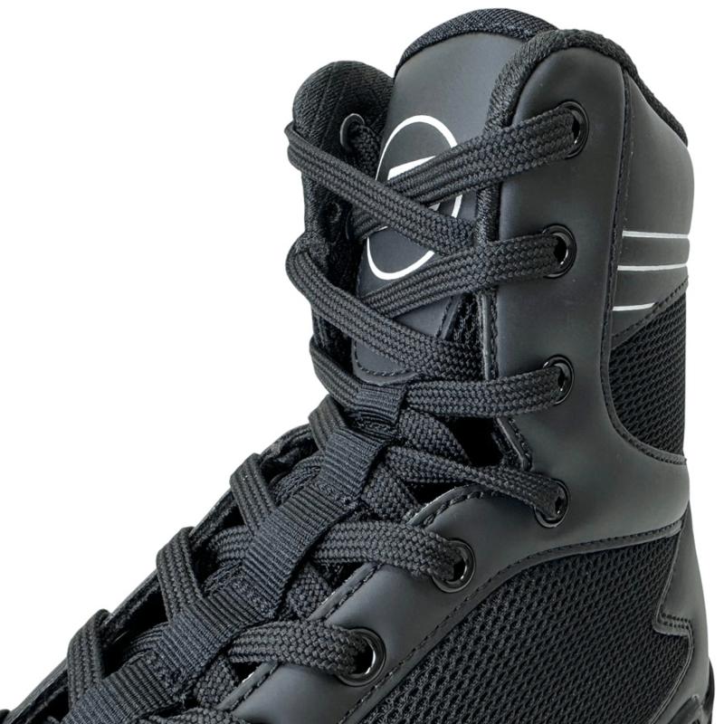 Верх обуви выполнен из высококачественного полиуретана в комбинации с дышащей текстильной сеткой, что гарантирует отличную вентиляцию и предотвращает перегрев стопы. Такая конструкция не только повышает комфорт, но и обеспечивает высокую износостойкость, позволяя боксёркам сохранять форму и внешний вид даже при регулярных нагрузках. Внутренняя текстильная подкладка мягко прилегает к ноге, исключая натирания и раздражения, а продуманная система шнуровки надёжно фиксирует стопу, минимизируя риск травм.