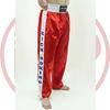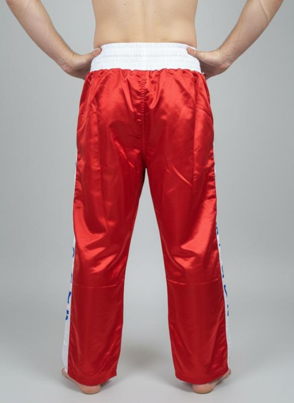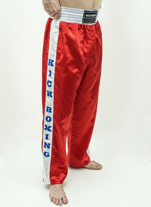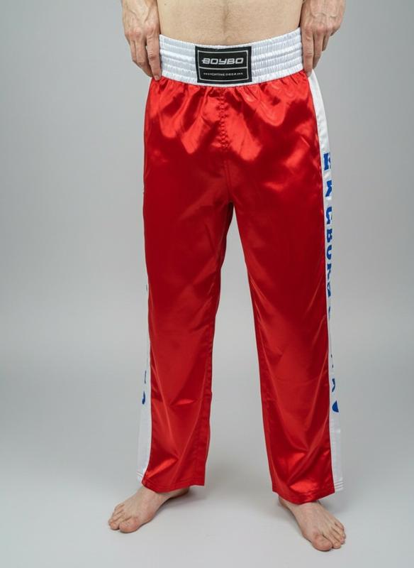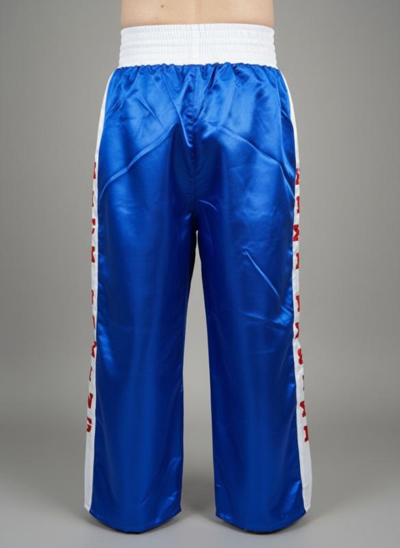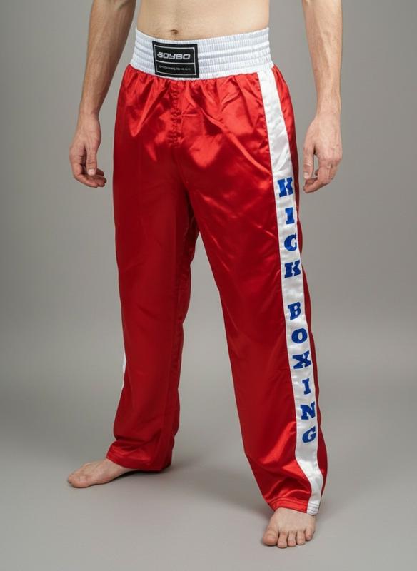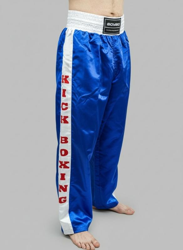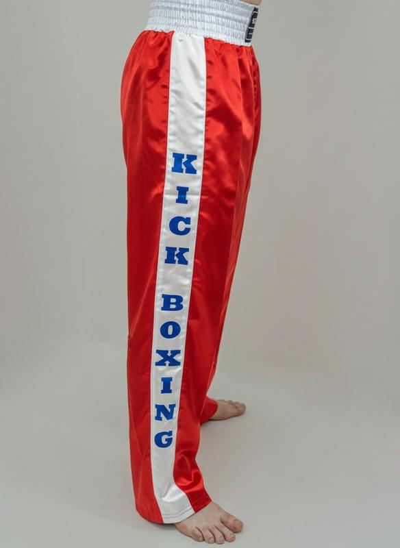 Брюки для кикбоксинга Специализированная экипировка для спортсменов, занимающихся полу‑ и полноконтактным кикбоксингом. Брюки подходят как для регулярных тренировок, так и для участия в соревнованиях — обеспечивают свободу движений и соответствуют требованиям спортивных дисциплин. Ключевые особенности Предназначены для динамичных нагрузок: не сковывают движения при ударах ногами, уклонах и перемещениях. Подходят для полу‑ и полноконтактных форматов кикбоксинга — отвечают стандартам экипировки для состязаний. Материалы и технология изготовления Основной материал — 100 % полиэстер: лёгкий, прочный, устойчивый к износу. Фактура — тяжёлый атлас: приятная на ощупь, обладает умеренным блеском, сохраняет внешний вид после многократных стирок. Дизайн нанесён методом сублимации: рисунок не выцветает, не трескается и не отслаивается даже при интенсивных нагрузках и частой стирке. Конструктивные преимущества Свободный крой — обеспечивает амплитуду движений, необходимую для техники кикбоксинга. Прочная строчка и усиленные швы — выдерживают резкие рывки и натяжение при активных действиях. Эластичный пояс или регулируемые элементы (в зависимости от модели) — надёжная фиксация на талии, отсутствие сползания во время тренировки. Размерная сетка Брюки представлены в размерах, соотнесённых с ростом ребёнка. Это позволяет подобрать модель, которая: не будет слишком длинной или короткой; обеспечит комфортную посадку по фигуре; не создаст избыточного объёма, мешающего движениям. Преимущества в эксплуатации Быстро сохнут — удобно для частых тренировок. Не мнутся — сохраняют аккуратный внешний вид. Простота ухода — допускаются машинная стирка и стандартная сушка. Брюки для кикбоксинга — практичный и функциональный элемент экипировки, который сочетает качество материалов, продуманный дизайн и соответствие спортивным требованиям