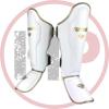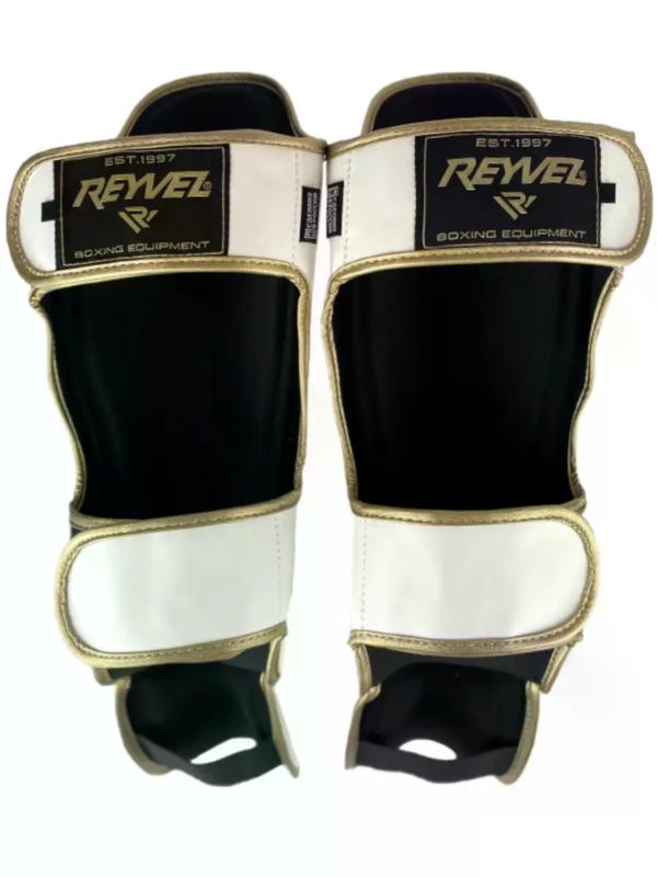 Защита голени и стопы Reyvel для тайского бокса - новинка от всеми любимого производителя Reyvel. Защита голени Reyvel изготовлена из прочной искусственной кожи, которая используется в яхтостроении. Внутренний мягкий неоперенный материал обеспечивает комфортное ношение щитков и не раздражает кожу. Защита голени имеет дополнительный защитный слой, что обеспечивает надежную защиту ноги. В этих щитках можно не только спарринговаться, но и отрабатывать удары по боксерским мешкам. Щитки Muay Thai Reyvel хорошо фиксируются на ноге с помощью двух липучек на голени и двух резинок на стопе и голени.
