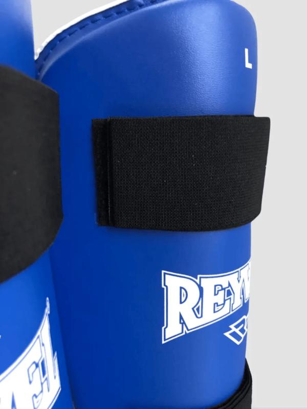 Фиксация на ноге осуществляется с помощью двух широких липучек, расположенных эргономично — это гарантирует плотное прилегание, исключает смещение и проворачивание защитных щитков во время движения. Резинки для стопы и пятки дополнительно фиксируют изделие, обеспечивая устойчивость при резких манёврах, прыжках и блокировании ударов.